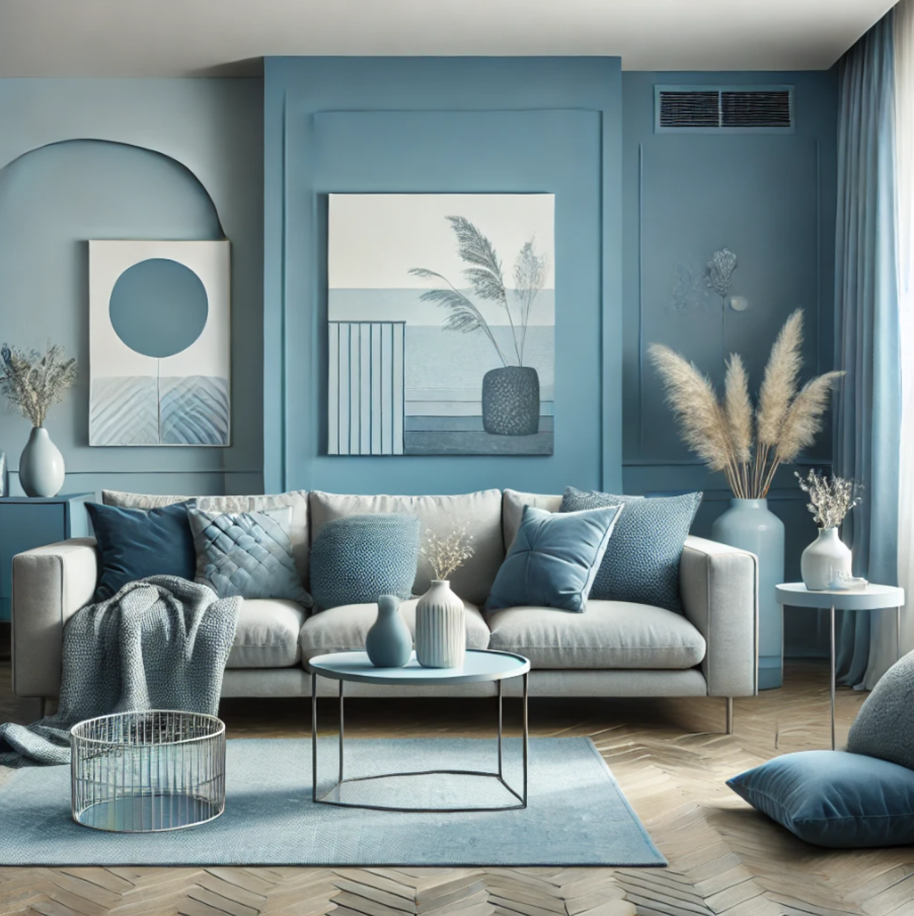 Waarom het werkt: Blauwe tinten brengen een gevoel van rust en sereniteit in de ruimte. Het is een veelzijdige kleur die goed samengaat met zowel moderne als traditionele stijlen.