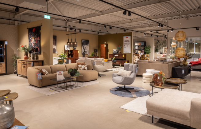 Onze winkel op Woonboulevard Breda is overzichtelijk, inspirerend en vooral heel relaxed om doorheen te lopen. Je kijkt op je gemak rond, probeert meubels uit en ontdekt hoe je met slimme keuzes een stijlvol interieur kunt creëren dat past binnen jouw budget.